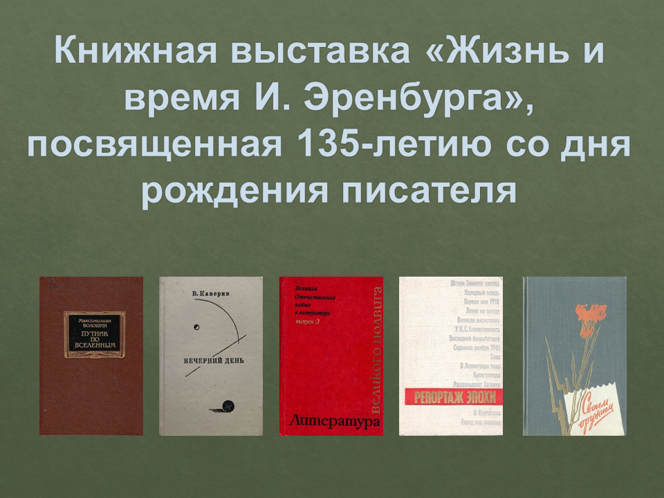 Книжная выставка «Жизнь и время И. Эренбурга», посвященная 135-летию со дня рождения писателя