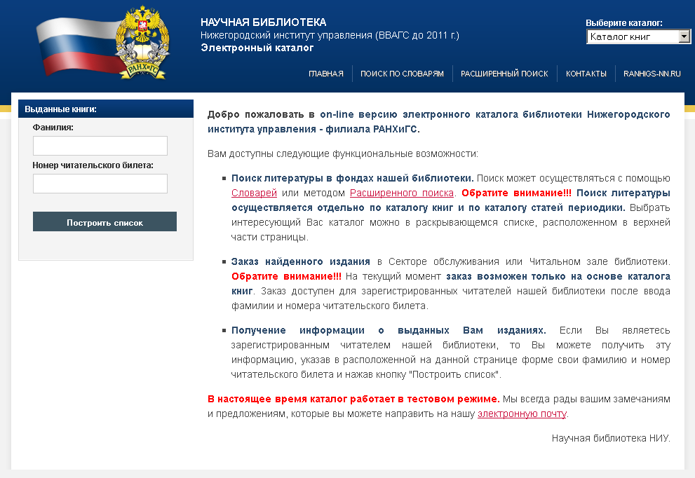 Представляем вашему вниманию переработанную on-line версию электронного каталога Библиотеки НИУ.