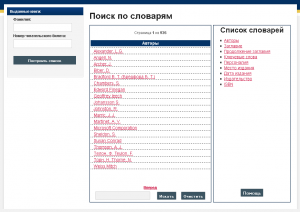 - «Поиск по словарям», предполагающий выбор критерия поиска на основе одного из словарей, предустановленных в системе.